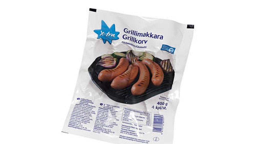 Juustomakkaraa on pakattu tavallisen makkaran pakettiin. SOK ilmoittaa, että sen valmistuttaman X-tra Grillimakkaran yhden erän kohdalla on tapahtunut pakkausvirhe, jonka seurauksena kyseinen erä poistetaan myynnistä, kertoo Evira.