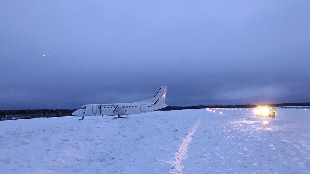 Kone ajautui kiitotieltä sivuun, mutta laskutelineet pysyivät ehjinä. Kukaan ei loukkaantunut.