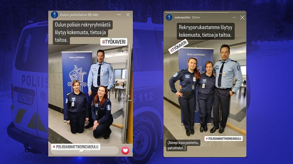 Oulun poliisi julkaisi eilen Instagram-tarinassaan kuvan rekrytointitapahtumasta Tampereelta.