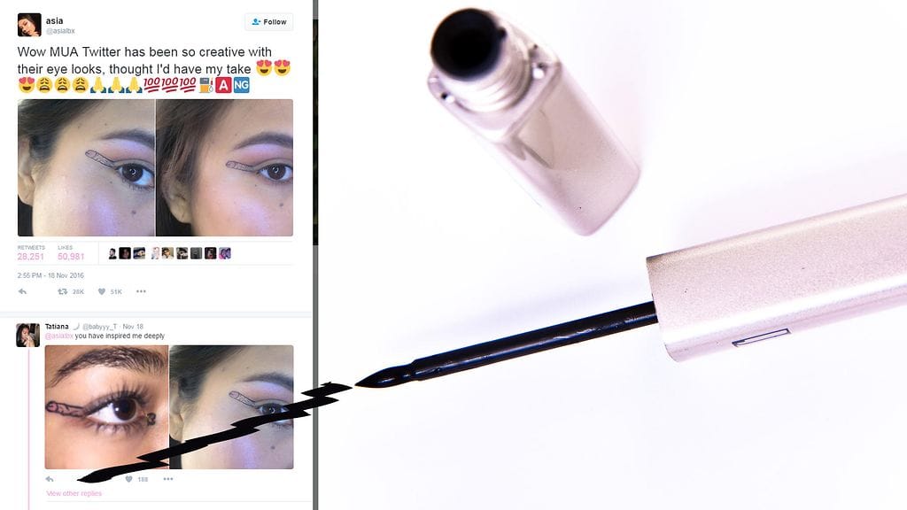 Meikkaaja ja eettisen kosmetiikkatuotemerkin omistaja, Asia B -niminen Twitter-käyttäjä, kehitti uusimman villityksen, jossa silmä rajataan peniksenmuotoisella rajauksella.