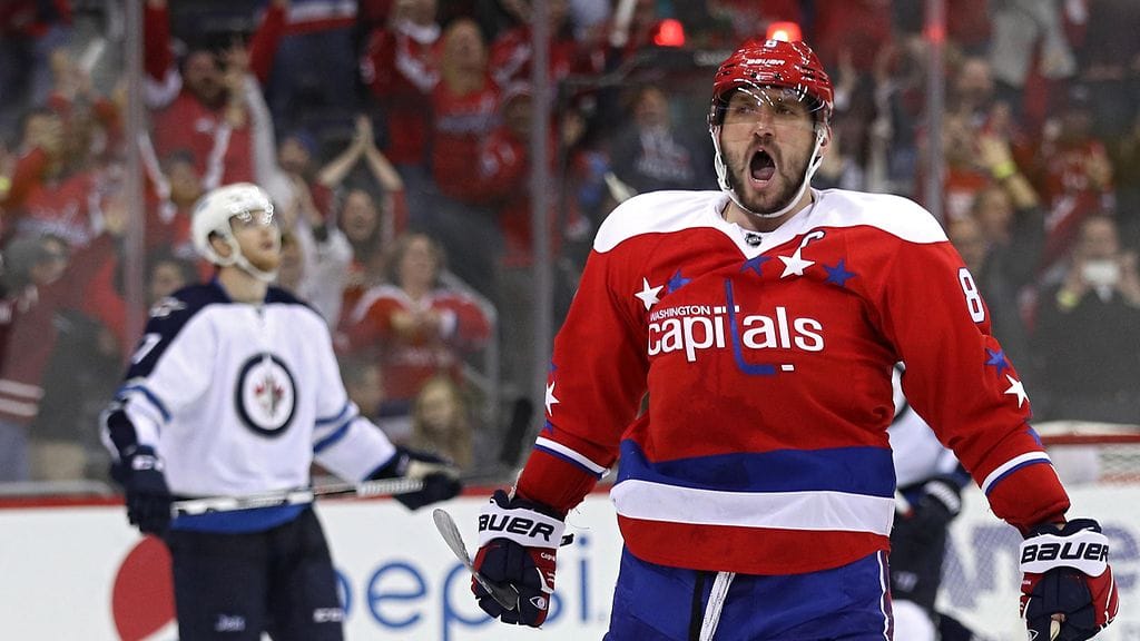 Washington Capitalsin Aleksandr Ovetshkin nousi valokeilaan ottelussa Winnipeg Jetsiä vastaan.