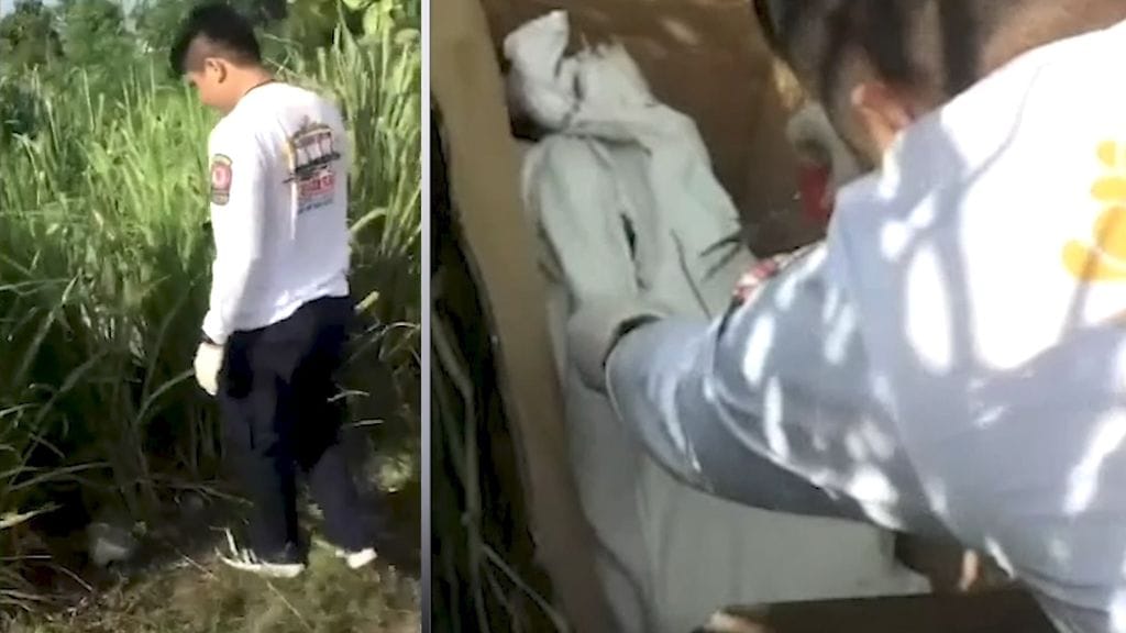 Paikalliset olivat laittaneet merkille, että tien vierustalla sijainnut laatikko vaikutti sisältävän ihmisen raajoja sekä hiuksia.