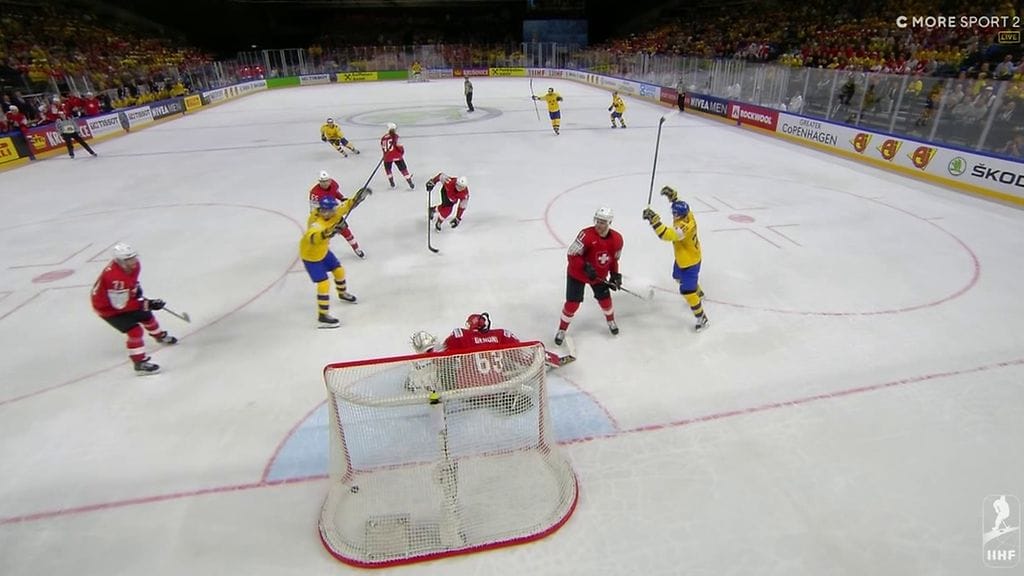 Toisen erän alussa Mikael Backlund rokotti Sveitsiä huonosta oman pään pelaamisesta tekemällä Ruotsin kolmannen maalin. Neljäskin maali oli lähellä, mutta kiekko pysähtyi maaliviivalle (video alla).