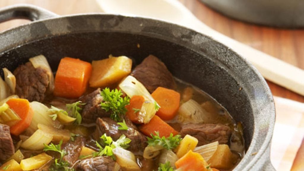 Ruokaisa Burgundinpata on sopii täydellisesti syksyyn. valmistetaan karjalanpaistista, pekonista ja kasviksista. Herkullinen pataruoka maustetaan tuoreilla yrteillä ja valkosipulilla.