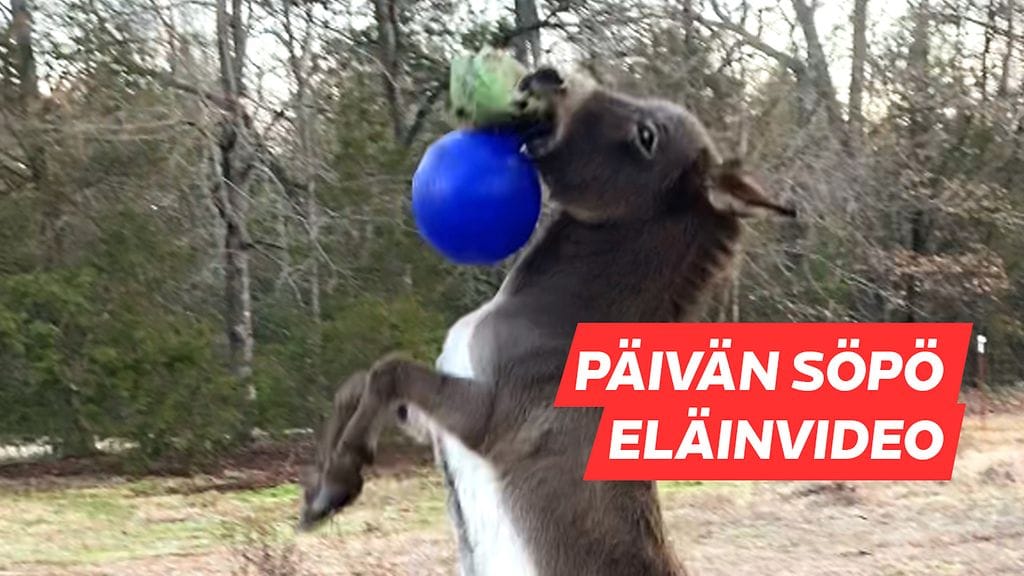 Yhdysvalloissa Indianan osavaltiossa aasin omistajat antoivat eläimelle koiran leikkipallon ja siitäkös riemu repesi.