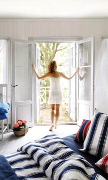 Romantikko löytää mökkinsä sisustukseen paljon myös tänä kesänä: pastellivärejä, emaliastioita, kukkakuoseja, kori-, metalli- ja peltitavaroita, jotka jatkavat tapetoitujen tai valkoisiksi maalattujen huoneiden tunnelmaa. Tarjolla on oikeasti vanhoja tai menneistä vuosikymmenistä innoituksensa saaneita uusia tavaroita, kuten pitsikoristeinen riippukeinu poutapilvien katseluun.