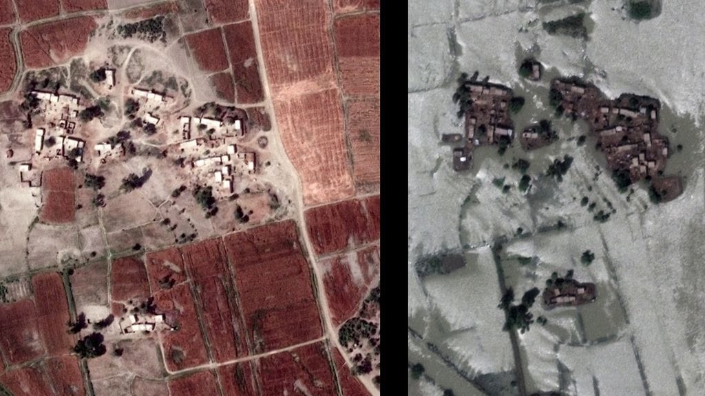 Katso yltä satelliittikuvat, jotka osoittavat tulvien laajuuden.