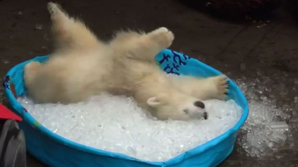 Jääkarhulla oli riemukkaat hetket jääpala-altaassa. Katso video!