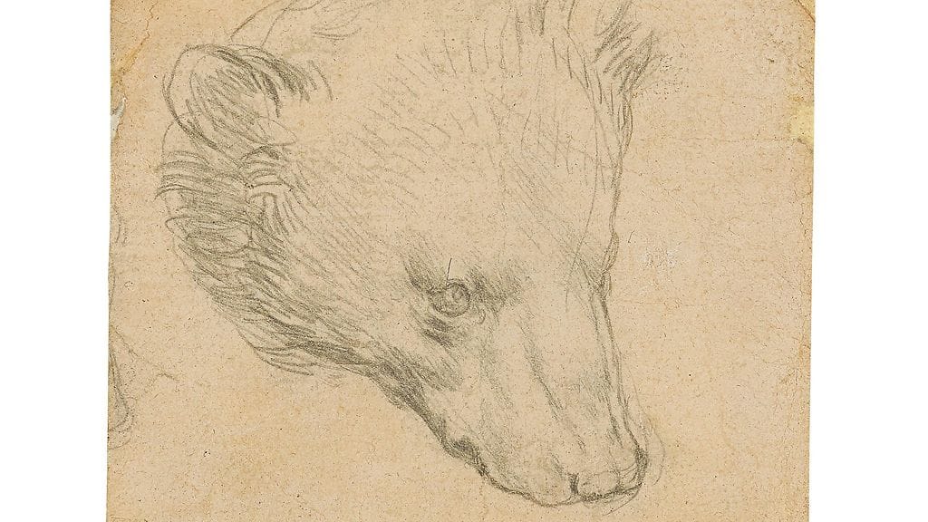 Kuvassa on renesanssinero Leonardo da Vincin piirros karhun päästä. Sen uskotaan keräävän kasaan ennätyksellisen rahapotin heinäkuussa käytävässä taidehuutokaupassa.
