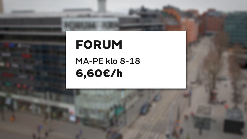 Arki-iltaisin kello 19–00 pysäköinnin hinta on kolme euroa per tunti. Öisin, lauantai-iltaisin ja sunnuntaisin tuntihinta on yksi euro.