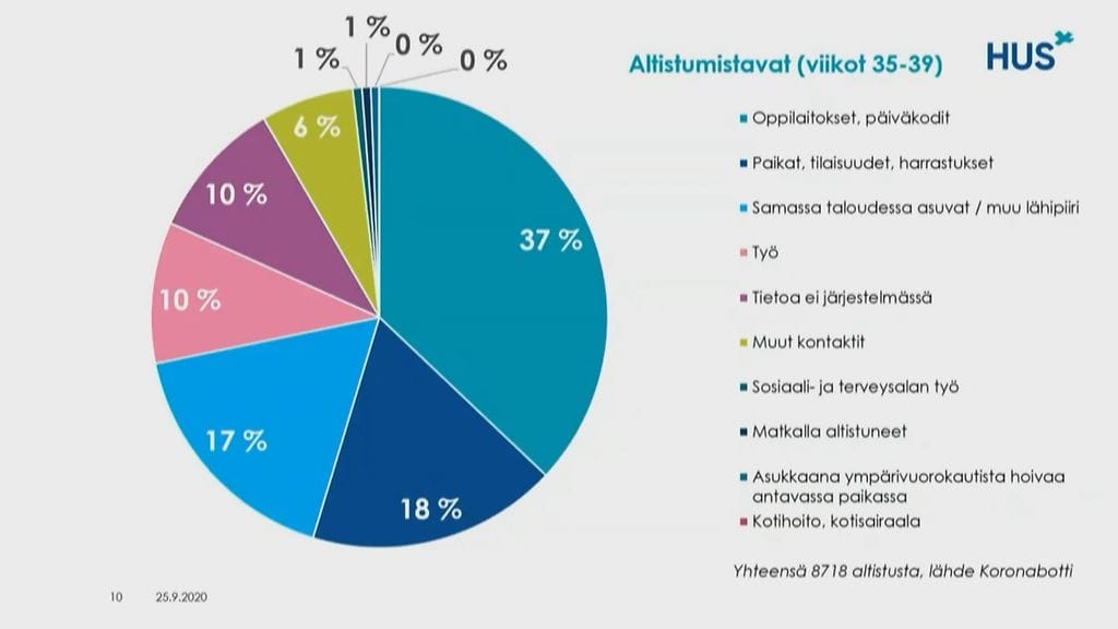 Suuri osa pääkaupunkiseudun koronatartuntojen alkuperästä jää pimentoon. Se on kuitenkin kiistatonta, että suurin osa tiedetyistä altistumisista tapahtuu oppilaitoksissa ja päiväkodeissa.