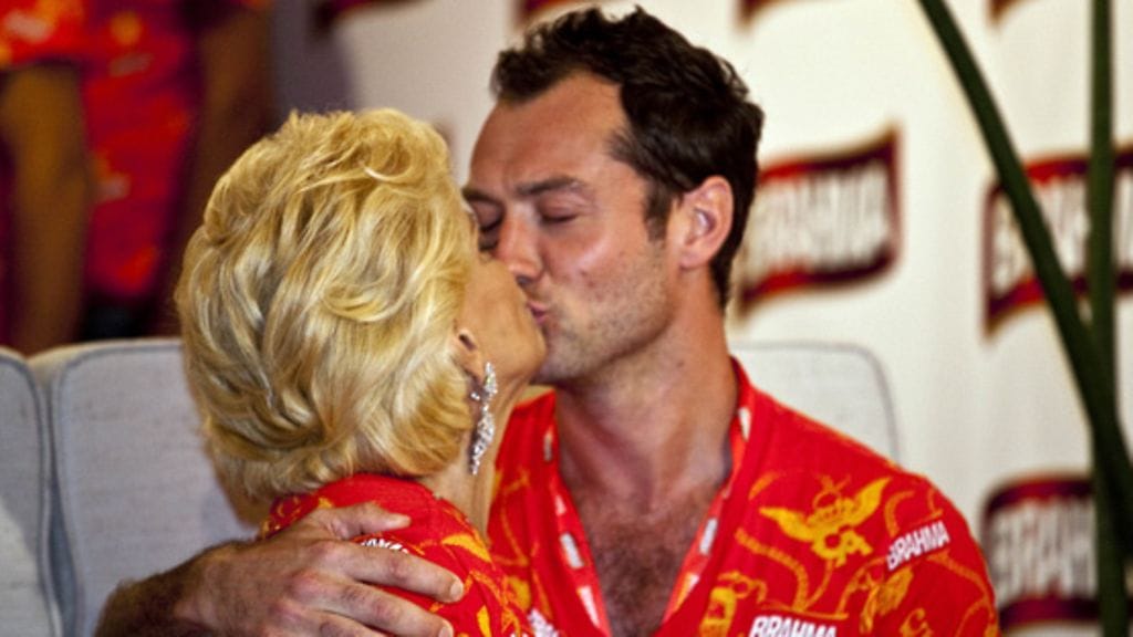VIP-aitiossa bilettänyt Pamela Anderson tanssahteli tuntemattomaksi jääneen miehen seurassa. Mies teki lähempää tuttavuutta blondikaunottaren kanssa ja lepuutti kättään tämän takamuksella.