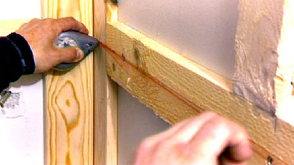 Kun korot oli mitattu ja ritsattu värilangalla sen mukainen suora linja vaakapaneelin ja pystypaneelin rajaukseen, kiinnitettiin ensimmäiseksi alimmaiset vaakalaudat urospontti ylöspäin. Rajakohtaan syntyy tällä tavalla tiivis ja siisti sauma, eikä listoja tarvita peittämään sitä. Kun alaosan pystypanelointi oli asennettu, lattianrajaan laitettiin jalkalista, joka peittää lattian epätasaisuuden vuoksi sinne jäävän pienen raon.