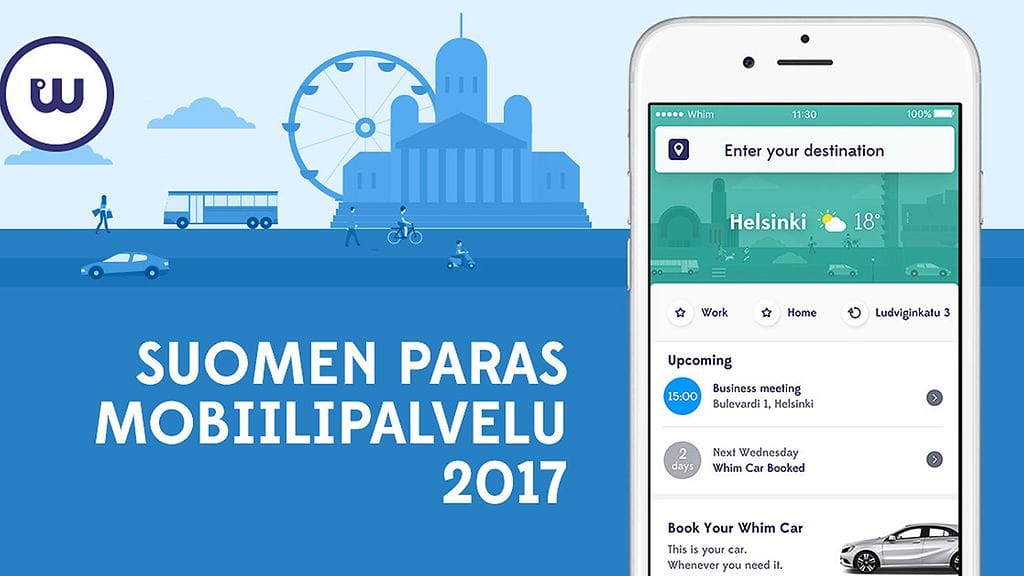 Eri liikkumismuodot käteväksi palvelukokonaisuudeksi yhdistävä matkasovellus Whim palkittiin suurimman kansainvälisen potentiaalin omaavana palveluna ja se vei pääpalkinnon Paras Mobiilipalvelu 2017 -kilpailussa.