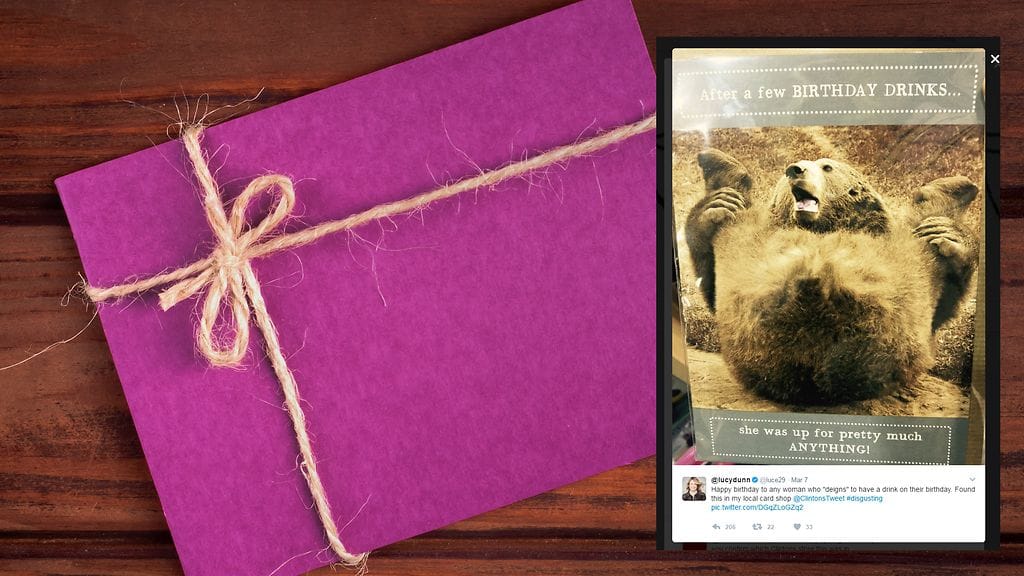 Kaupan syntymäpäivä- ja muut onnittelukortit voivat olla huvittavia, outoja tai noloja, mutta harvoin ne ovat suorastaan törkeitä.