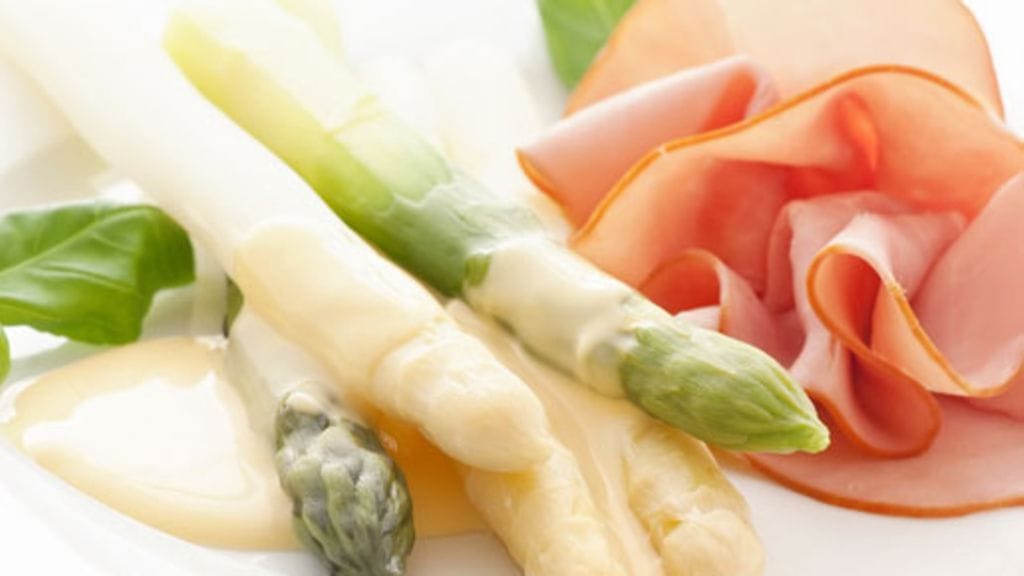 Maistuvat parsat nautitaan hollandaisekastikkeen ja kinkun kera.