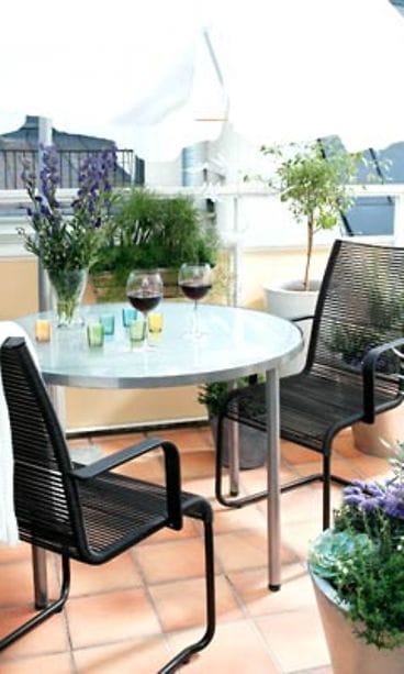 Mikäli ruokailu ei ole parvekkeen tärkein tarkoitus, kannattaa hylätä ajatus kokonaisen ruokailuryhmän ostamisesta ja hankkia sen sijaan helposti liikuteltava pöytä tai tarjoiluvaunu sekä muutama kunnollinen aurinkotuoli. Ennen kalusteiden hankkimista on hyvä miettiä, mihin parveketta haluaa ensisijaisesti kesällä käyttää.