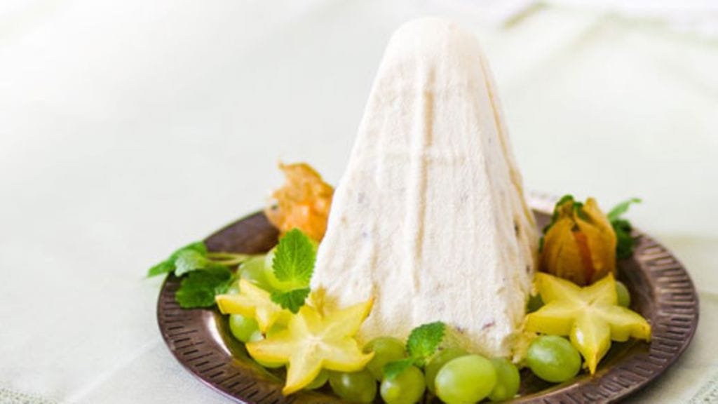 Pasha valmistetaan edellisenä päivänä ja laitetaan yöksi jääkaappiin. Pashan voit valmistaa kulhoon tai vaikkapa sideharsolla tai suodatinpussilla peitetyssä kahvin suodattimessa – kunhan astiassa on reikä, josta ylimääräinen neste pääsee valumaan pois.