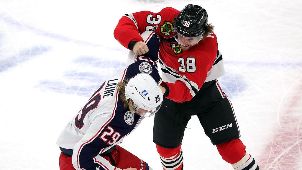 Laine pudotti hanskat Chicago Blackhawksin Brandon Hagelia vastaan ottelun avauserässä. Hagel oli hetkeä aiemmin taklannut Laineen ketjukaveria Jack Roslovicia.