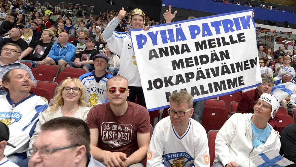 Pietarin Jubileinyi-areenan katsomossa heilui lakana, jossa oli viesti Patrik Laineelle: ”Pyhä Patrik, anna meille meidän jokapäiväinen maalimme”.