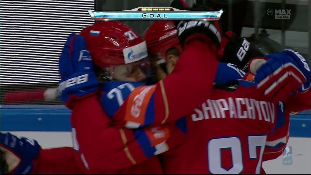 Hyökkääjä Vadim Shipatshov alusti kaksi maalia ja teki kaksi. Näin hän nousi kahdeksaan tehopisteeseen eli turnauksen pistepörssin kärkeen ohi Suomen Patrik Laineen. Laineen tehot ovat 4+3 ja Shipatshovin 3+6.