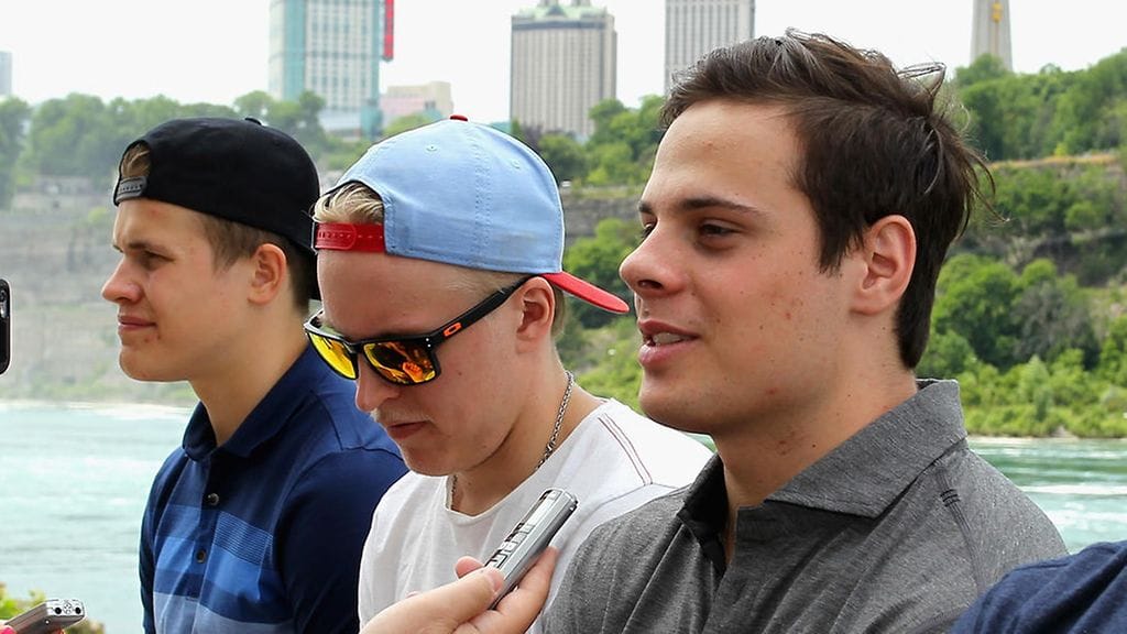 Luonnollisesti suomalaiselta kysyttiin Auston Matthewsista, sillä kaksikon välille on rakennettu kaksinkamppailua ykkösvarauksesta. Vihamiehiä heistä ei kuitenkaan saa millään. Paremminkin Laine ja Matthews ovat ystävystyneet varaustilaisuutta alustavissa tapahtumissa.