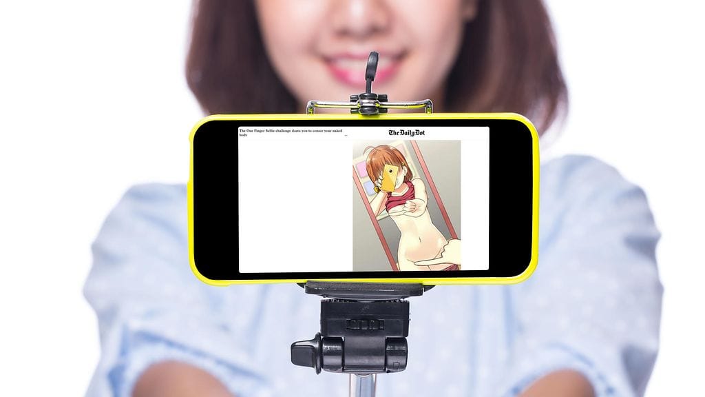Eikä tässä vielä kaikki: samalla alaa valtaa entistä rivompi somehaaste nimeltä #OneFingerSelfieChallenge, suom. yhden sormen selfie -haaste. Kuvassa on ideana ottaa selfie peilin kautta ja peittää yhtä sormea käyttäen sekä rinnat että alapää.