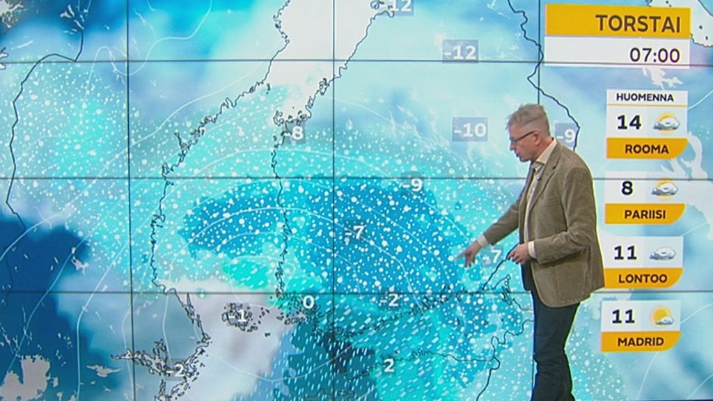 Yllä olevalla videolla MTV Uutisten meteorologi Pekka Pouta näyttää, miten lumi-inferno lähestyy Suomea.