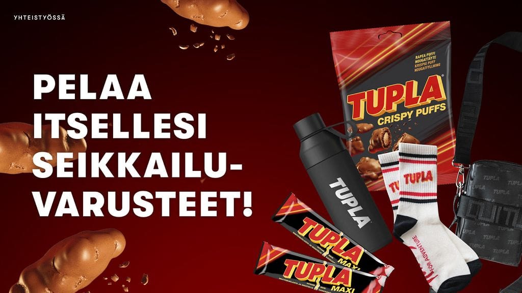 Kaikkien pelaajien kesken arvontaan pääpalkintona ennennäkemätön Tupla-paketti täynnä ainutlaatuisia tuotteita, kuten Tupla-Combo by Cuitu -laukku, t-paita ja kestävä termospullo – tätä settiä et muualta saa! Arvomme myös viikoittain herkullisia Tupla-tuotteita ja suositut retrosukat. Klikkaa siis peliin, seikkailut odottavat!