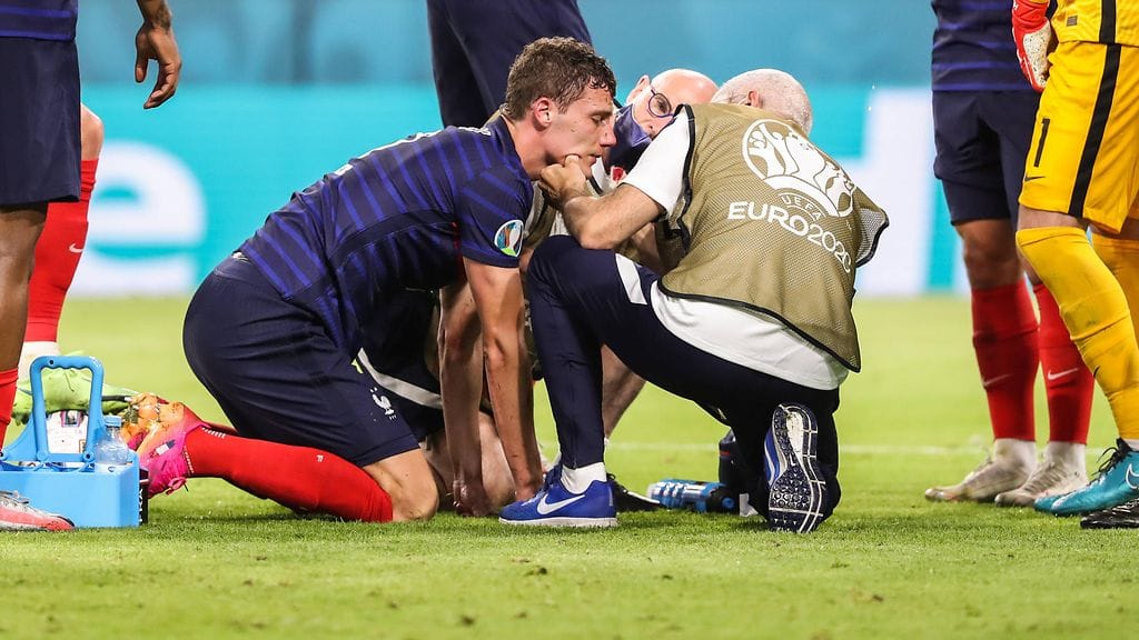 Ranskan Benjamin Pavard sai tiistaina rajun iskun päähänsä, kun Saksan Robin Gosens törmäsi ranskalaispuolustajaan kovalla vauhdilla.