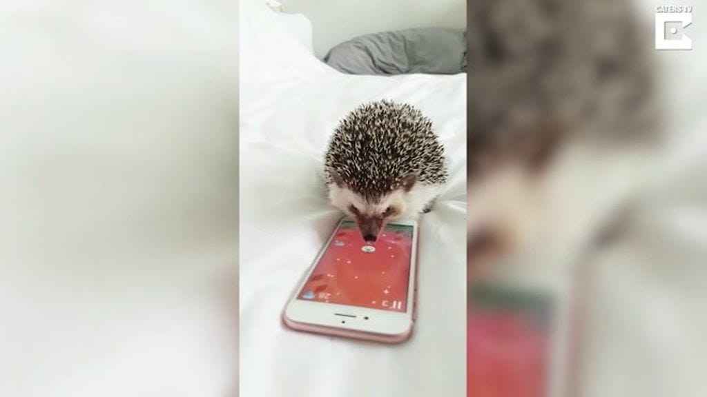 Mitä ilmeisemmin kännykän näytön tuoksut saavat lemmikkisiilin hullaantumaan.