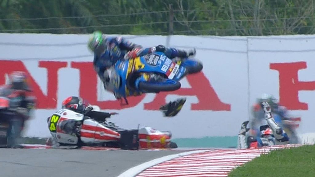 Moto3-luokan Malesian osakilpailu sisälsi hurjia kaatumisia ja jännittävän taistelun voitosta.