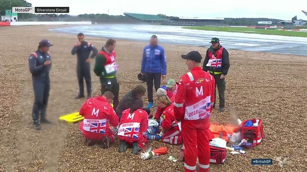 Pahiten tilanteessa osumaa sai Ducatin Avintia-tiimin Tito Rabat, jota hoidettiin pitkään radalla ennen ambulanssiin siirtämistä.