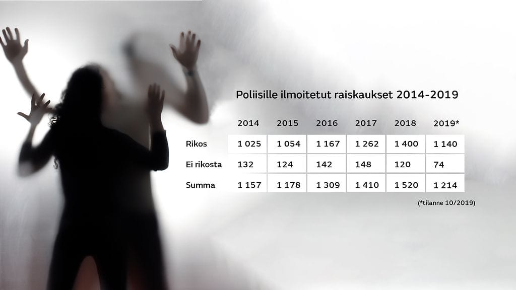 Poliisi sai viime vuonna yhteensä 1 520 raiskausilmoitusta. Niistä 120 oli sellaisia, joissa poliisin mukaan ei ollut tapahtunut rikosta. Vuonna 2017 raiskauksista kirjattiin 1 410 ilmoitusta, joissa rikosta ei epäilty olleen 148 tapauksessa.