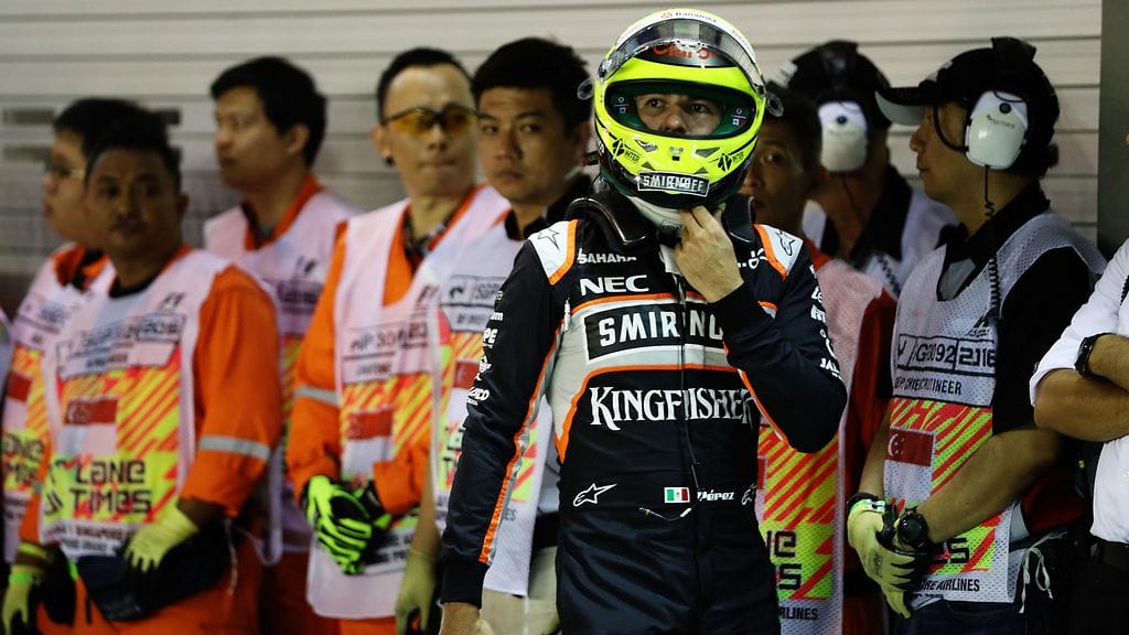 Force Indian Sergio Perezille on tuomittu kahdeksan lähtöruudun rangaistus liiallisesta nopeudesta ja ohittamisesta keltaisten lippujen aikana Singaporen F1-aika-ajoissa.