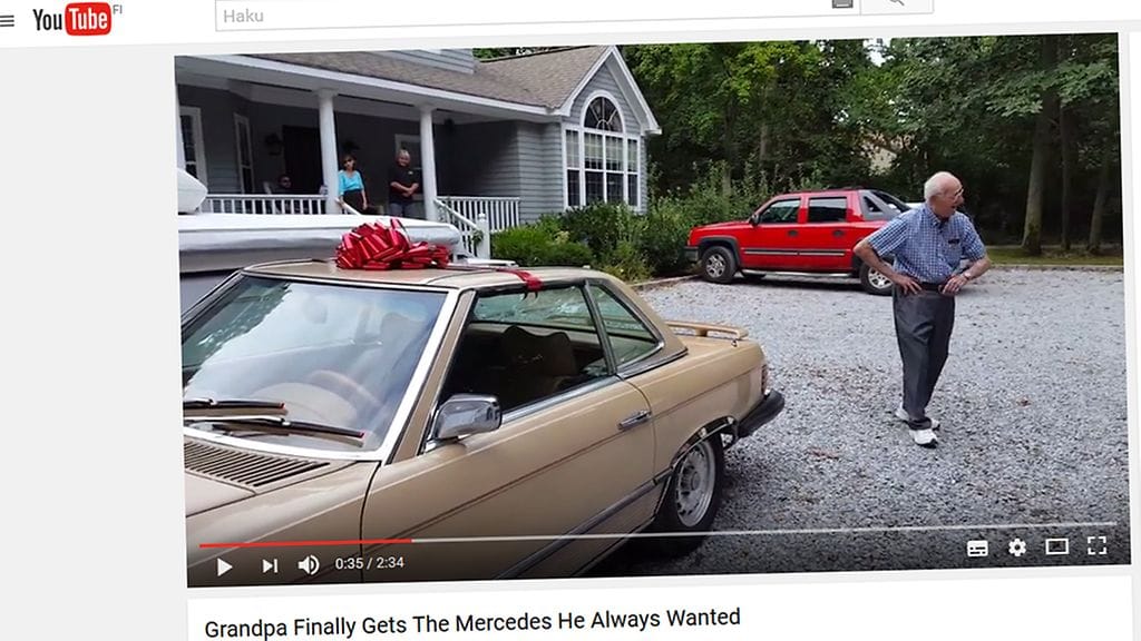 Perhe Illinoisissa, Yhdysvalloissa antoi isoisälleen lahjaksi auton, josta pappa oli unelmoinut jo vuosikymmenien ajan. Lahja-auto oli Mercedes-Benz 450 SL, jonka entinen omistaja oli malli ja näyttelijä Christie Brinkley.