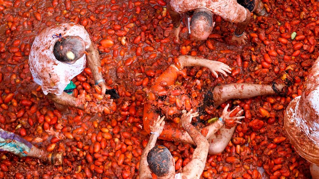 Espanjan kuuluisa ”Tomatina” -tomaattisota järjestettiin jälleen keskiviikkona kahden vuoden koronatauon jälkeen, kertoo uutistoimisto AP.