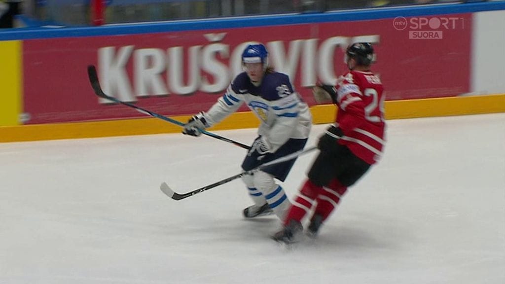 Kanadan kapteeni laittoi jalkansa Laineen eteen, kun pelaajat luistelivat vaihtoon. Suomalaisen jalka jäi kiinni ja vääntyi ilkeän näköisesti.