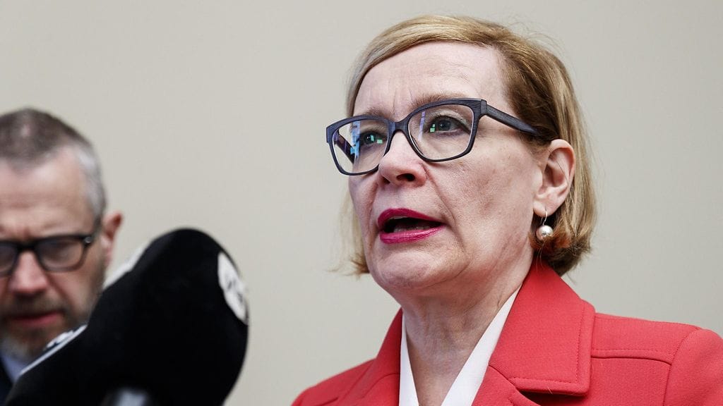 Puhemiesneuvoston kokouksesta palannut Paula Risikko kommentoi medialle kokouksen sisältöä ja toimenpiteitä, jotka otetaan käyttöön tietovuodon vuoksi.