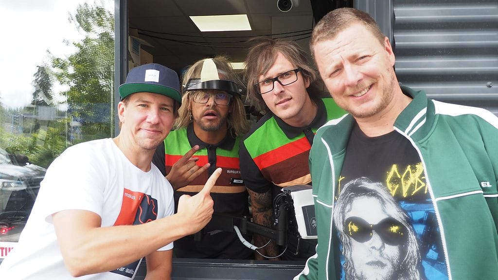 Hampurilaisravintolan myyjiä esittäneet miehet joutuivat kuumottelemaan pahaa-aavistamattomia asiakkaita. Haasteeseen heittäytynyt Parkkonen muun muassa kyseli asiakkaalta, näkeekö tämä unta hänestä.