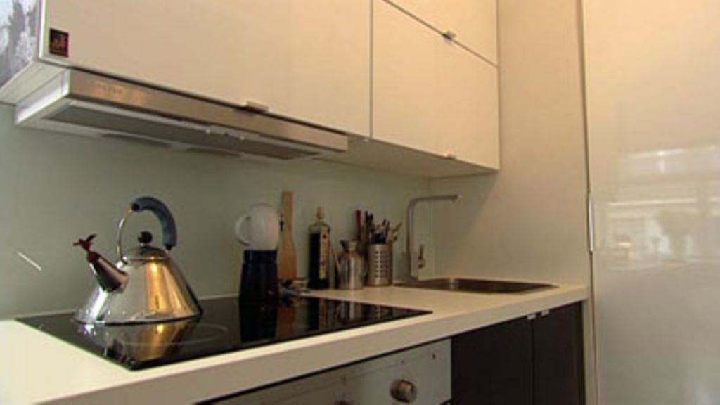Keittokomeron suunnittelu oli haastavaa, sillä asukkaan toivelista oli vaativa. Keittiöön toivottiin ruokailutila neljälle hengelle, neljän pisteen liesitaso ja täysimittainen uuni. Pieni astianpesukonekin olisi hyvä olla, samoin kuin korkea jääkaappi. Lisäksi tarvittiin säilytystilaa astioille sekä ruokatarvikkeille. Kaikki nämä saatiin kuitenkin mahtumaan reilun kahden neliön keittokomeroon.