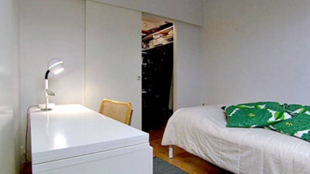 Makuuhuone ei ole pinta-alaltaan kovin suuri, eikä tarkoituksena ole tehdä suurempia kalustemuutoksia. Asukas kuitenkin kokee, että sisustukselle olisi aika tehdä jotain. Makuuhuoneen sisustuksen toivotaan olevan linjassa olohuoneeseen jo aiemmin tehdyn muutoksen kanssa. Makuuhuoneesta on käynti erilliseen vaatehuoneeseen, jonka säilytysratkaisuihin asukas ei ole tyytyväinen. Säilytystila pitäisi saada maksimoitua ja ripustettaville vaatteille pitäis olla enemmän tankotilaa. Muutos toivotaan tehtävän mahdollisimman vähillä kalustehankinnoilla.