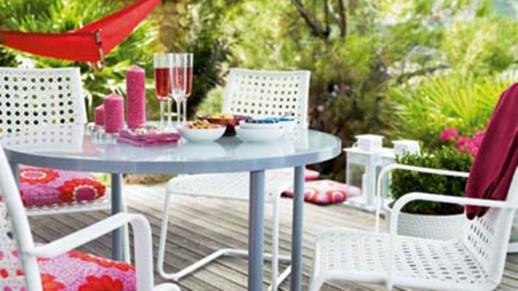 Pihan viihtyisyyteen voidaan vaikuttaa näyttävillä kesäkalusteilla. Kukapa nyt kauniina kesäpäivänä haluaisi syödä kuumaassa keittiössä, kun on mahdollisuus istua miellyttävän vilpoisassa kesäkeittiössä omalla pihalla! Kalusteisiin voi valita omaa värimaailmaa miellyttävät pehmusteet ja niihin sopivan liinan pöydälle.