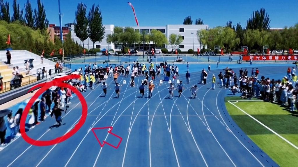 Vanhempi opiskelija Hao Xiaoyang Datongin yliopistossa halusi kuvata 100 metrin juoksukilpailusta dynaamisen videon, joten hän päätti juosta kisaajien vieressä.