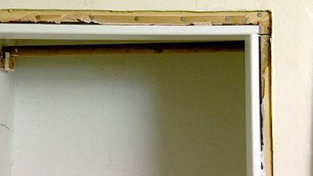 Yläkisko asennettiin pintalistan tasalle. Se kiinnitettiin ensin molemmista päistään ja sitten väliltä. Ovi liikkuu alakiskon varassa, joka puolestaan tuli pari senttiä sisemmäksi. Silloin ovet tulevat pystysuoraan.