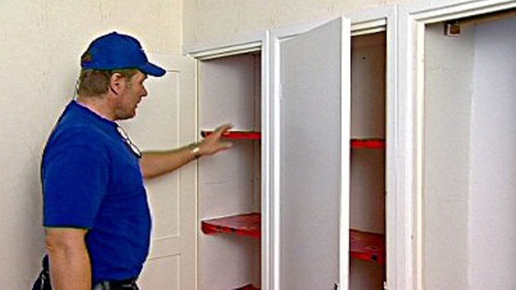 Vanhan puurakenteisen huoneen makuuhuoneessa oli kolme vaatekomeroa, jotka haluttiin yhdistää ja vaihtaa veto-ovet liukuoveksi. Kaapisto on toteutettu kuten vuosikymmeniä sitten oli tapana - komerot eivät olleet nykyiseen tapaan erillisiä kalusteita, vaan ne oli rakennettu seinän sisään. Kaapistoon kuuluu kaksi hyllykaappia ja tankokaappi.