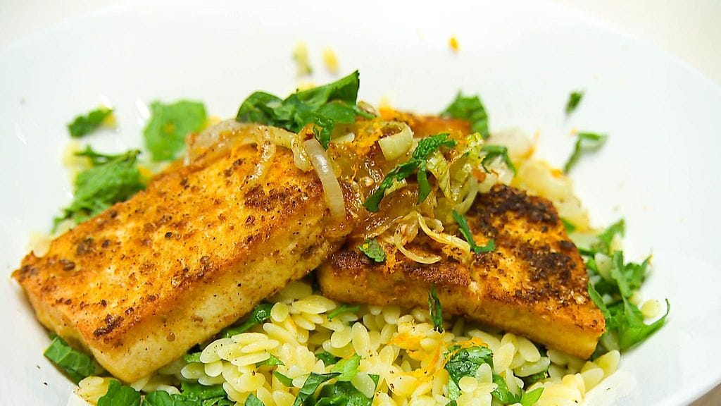 Pipsa Hurmerinta pikatehtävän reseptit: Paistettua tofua, pastasalaattia ja appelsiinikastiketta