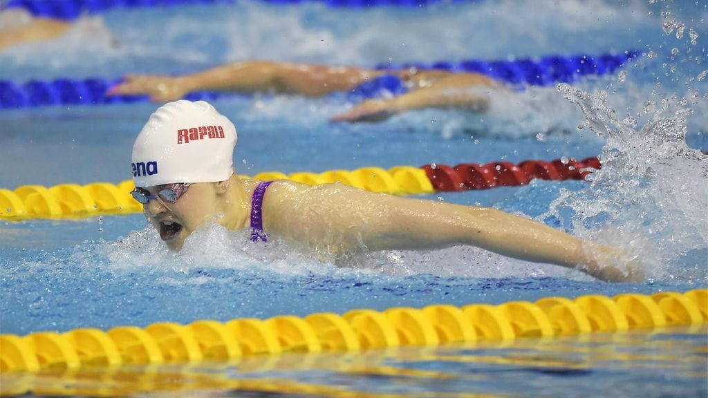 Emilia Pikkarainen ui sunnuntaina 50 metrin perhosuinnin Suomen ennätykseksi 26,85 Helsingin SM-kilpailuissa.
