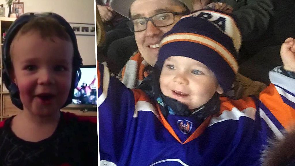 Reilun kolmen vuoden ikäinen Jerry-poika näyttää mallia kaikille kiekkofaneille kannattamisesta.