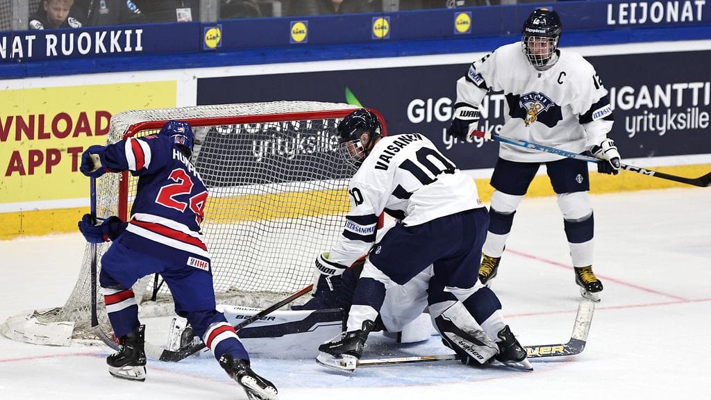 Suomen alle 18-vuotiaiden poikien maajoukkue eli Pikkuleijonat kärsi murskatappion MM-kotikisoissa Espoossa, kun se hävisi Yhdysvalloille 4–9. Suomi kohtaa puolivälierissä Ruotsin.